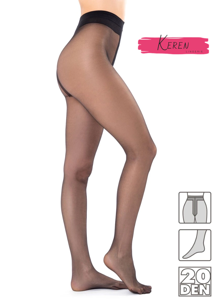 Media panty con lycra. Esta tejida con un hilado de 20 Deniers, se ve por completo la piel de la pierna y la sensación es de una media muy fina y transparente. Composición de articulo: 80% Poliamida/ 20% Elastano.